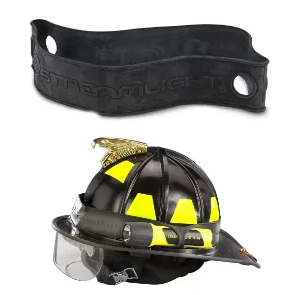 Esta banda de goma para casco Streamlight está diseñada para contener hasta dos linternas en el lado izquierdo y/o derecho de cualquier estilo de casco.