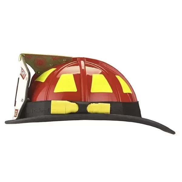 Se adapta a la mayoría de cascos de bomberos y cascos duros y aberturas en ambos lados de la correa permiten la inserción de la mayoría de linternas de diámetro pequeño.