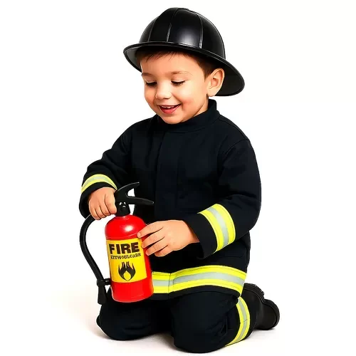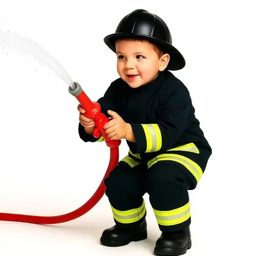 Confeccionado en gabardina resistente y con cintas reflectivas, este conjunto ofrece un diseño auténtico, ideal para juegos, actividades educativas, eventos, actos escolares o como regalo especial para futuros bomberos.